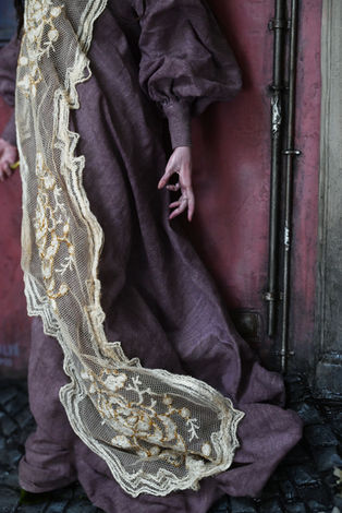 "Il Corso" 2025 polymer and epoxy clay, acrylic paint, mohair, vintage lace, fabric, vintage faux flowers, balsa wood in shadowbox frame 23.5"h x 19.5"w x 5"d $2300 USD