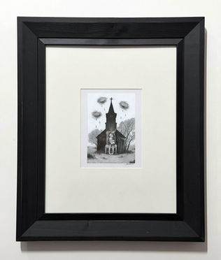 Arch Enemy Arts presents SAME WINDOW DIFFERENT VISUAL, an exquisite new collection by dark surrealist Babs Webb, the artist’s second feature with the gallery. Five drawings and three light-up dimensional works, including a gorgeously constructed rare sculpture, form a gateway into the artist’s dark and ethereal inner world. Harrowing and complex, Babs’ symbolic images float like memories moving in and out of view.