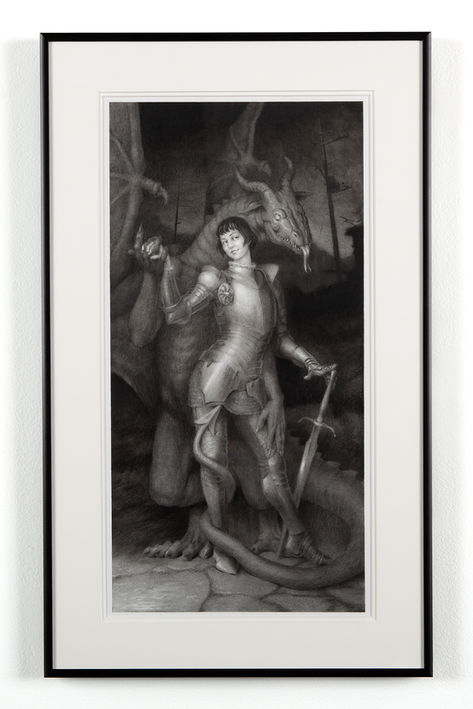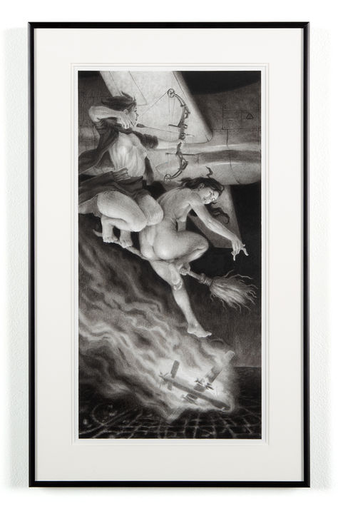 (from SEE YOU NEXT DOOMSDAY) "When You Fell From Heaven" 2024 graphite, charcoal, pastel on paper 12" x 6" framed to 16" x 10" $500 USD