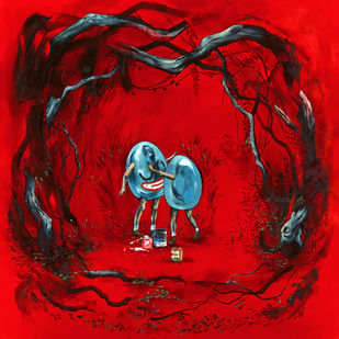 "The Devil Devouring My Self Doubt" 2024 acrylic and oil on board 18" x 18" framed to 19.5" x 19.5" $3000 USD